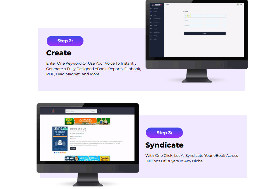It lets you instantly generate 100% unique, human-like eBooks, complete with professional 3D covers, interactive flipbook effects, and ready-to-publish designs. And the best part? You can publish directly to the built-in marketplace or syndicate your eBook across 50+ platforms for instant buyer traffic.